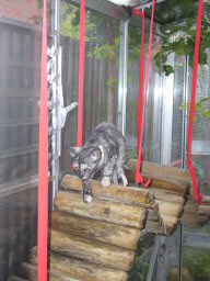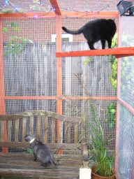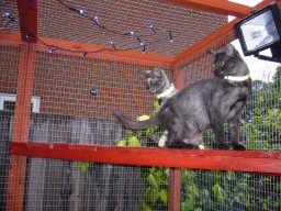 In order to keep our Asian cats away from the traffic, we have built a cat extension specifically to meet their needs, thanks to Riverside Aviaries.
